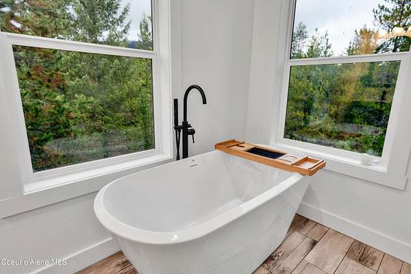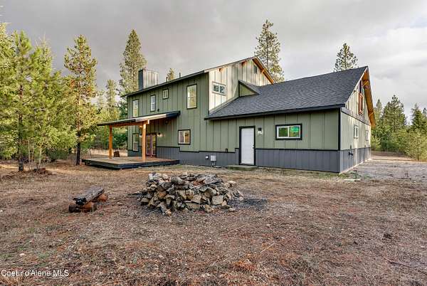 Why wait for new construction? This custom-built colonial-style home is ready for its first owners! 4 bedrooms, 2.5 baths, and a big bonus room, easily a 5th bedroom or crafting area or office. Beautifully crafted with custom woodwork using locally sourced red fir timbers, this home harmonizes with the North Idaho landscape. Thoughtful details abound, including a grand staircase, stone counters and wraparound deck. Dedicated spaces like the formal dining room, walk-in pantry, and laundry complement the open-concept chef's kitchen and living room. The master suite is a luxurious retreat, featuring vaulted ceilings, a soaking tub, a grand tiled shower with dual heads, and a private deck. The property features a balanced blend of low-sloping usable land, with a mix of mature trees and open spaces with a large cleared area perfect for stables, farming, or livestock. Two driveways make RV or boat pull-through easy. A gravel RV pad with full hookups is on the garage side,