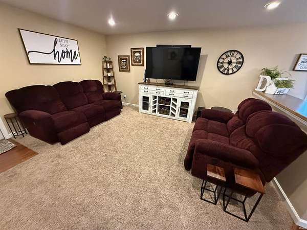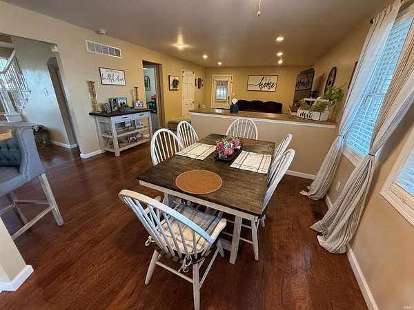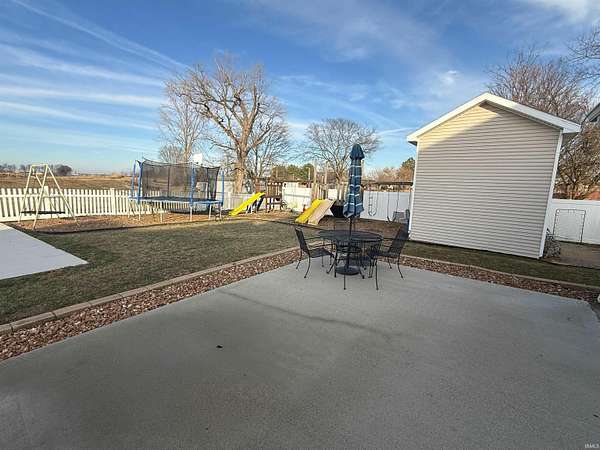 Enjoy the peace and privacy of a true country setting on over 3 beautiful acres with this spacious 5-bedroom, 3.5-bath home built in 2007. Designed for both comfort and flexibility, the home offers an abundance of living space on both the main level and upstairs--perfect for large families, multi-generational living, or entertaining. The main level owner's suite is a relaxing retreat featuring a double-vanity bath, tiled walk-in shower, and jetted tub. A second main-level bedroom and full bath provide ideal space for guests or in-laws. The large kitchen features a center island, eat-at bar, abundant cabinetry, pantry space, and included appliances, and flows nicely into the multiple living areas. A convenient main-level laundry room offers direct access to the backyard. Upstairs you'll find a huge family/rec room, three additional bedrooms, and a massive bonus en-suite over the garage, offering endless possibilities for a home theater, gym, playroom, or private guest suite. The home also features an oversized 2.5-car garage (28' wide x 24' deep) and plenty of parking thanks to the asphalt and gravel driveways. The 24' x 40' pole barn provides even more storage or workshop space. Step outside and enjoy the fully-equipped backyard with a vinyl picket fenced yard, open and covered patio areas, a newly poured basketball court, playground area, and an additional detached outbuilding--perfect for outdoor fun and entertaining. Seller updates include: New vinyl fence (2021), New roof & gutters on pole barn (2025), Main-level A/C (2017), Septic system checked & cleaned (2019). Utilities include Spectrum cable internet, Gibson Water, and WIN Energy Electric.This property offers the space, privacy, and amenities you've been searching for--both inside and out. Sellers are offering a 1 year 2-10 Supreme Coverage Home Warranty for buyer's peace of mind. ($749)