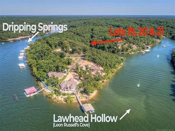 Spacious 2.48-Acre Waterfront Opportunity on South Grand Lake This rare offering includes three adjoining lots sold together, totaling approximately 2.48 acres in a premium South Grand Lake community. With direct water frontage, the property offers a scenic setting for your lake getaway or dream home. Swim dock potential - subject to GRDA approval. Easy to find, yet tucked into a private cove in Lawhead Hollow - famously known as Leon Russell's Cove - this spacious property delivers breathtaking views, a quiet, protected setting away from rough water, and convenient proximity to the lake's seasonal festivals and local landmarks. Located between Dripping Springs Cove and Lawhead Hollow, this is a rare opportunity in a sought-after, storied part of Grand Lake.
