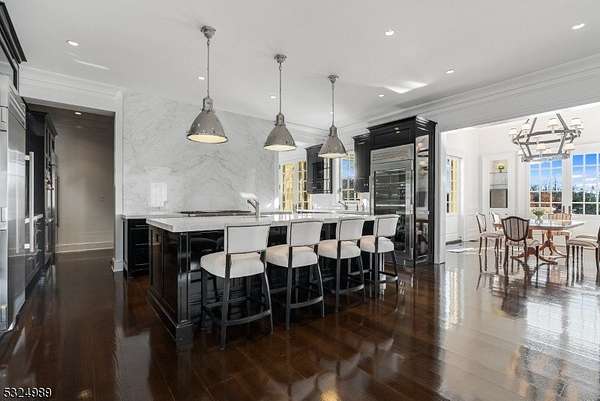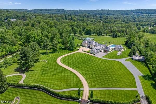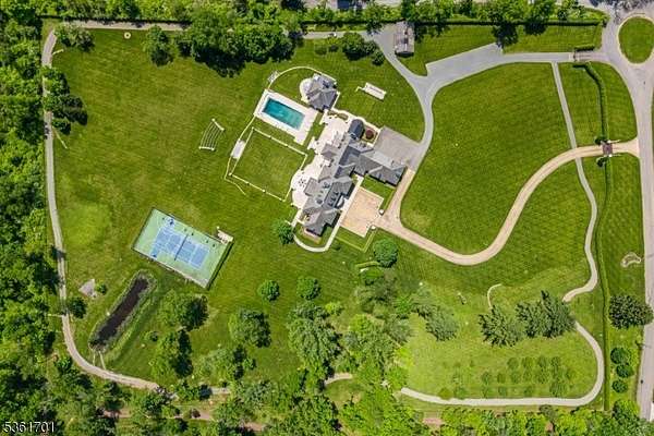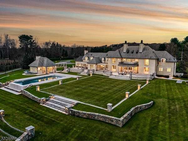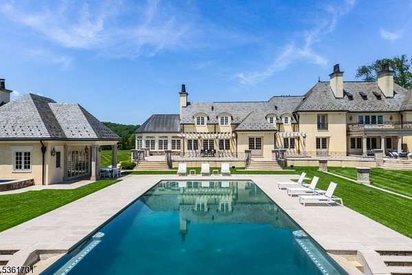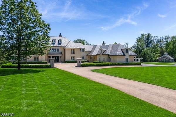 Discover the pinnacle of luxury living in this exquisite 6-bedroom French country estate, set on 11 unparalleled acres. Designed by Brandes Maselli and completed in '08, this architectural masterpiece underwent contemporary updates in 2023. Through a gated entry and winding drive, you will be greeted by the residence's stately stucco and slate facade. Step inside to a world of refined luxury, where custom architectural millwork, rich hardwood floors and limestone fireplaces elevate every space. The gourmet kitchen is a culinary masterpiece, perfectly situated to flow into light-filled living and dining spaces with custom mahogany French windows and doors. The 2nd level features a large in-law suite with private entrance. A fully finished lower level invites recreation and relaxation. The property's outdoor amenities rival those of a luxury resort with an expansive limestone patio, infinity-edge pool, spa, and notable pool house. A lighted sports court provides tennis and basketball, while a perimeter walking path winds through the landscape. The cottage features a kitchen/living room, bathroom and garage. The rear yard is designed for large-scale tented gatherings/events. Your peace of mind is secured by an automatic generator, irrigation, security system and zoned sound system. This extraordinary estate allows privacy while enjoying proximity to award-winning schools, equestrian facilities, world-class golf courses, upscale shopping and dining, highways and NJ Transit.