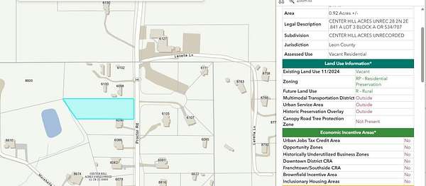 Come Build Your Vision on Proctor Road! .92 acre vacant lot on an established street in Tallahassee. Great Schools. Discover the perfect opportunity to own a vacant lot on Proctor Road in Tallahassee, Florida. This property offers a blank canvas to design and build the home or investment project you've been dreaming of. Conveniently located near shopping, dining, schools, and major roadways, this lot provides easy access to everything the city has to offer while still allowing room to create your own private space. Whether you're a builder, investor, or future homeowner, this lot presents endless possibilities in an established area of Tallahassee. With no existing structures, you can start fresh and bring your vision to life from the ground up. Don't miss this chance to secure land in a growing market and make it your own!