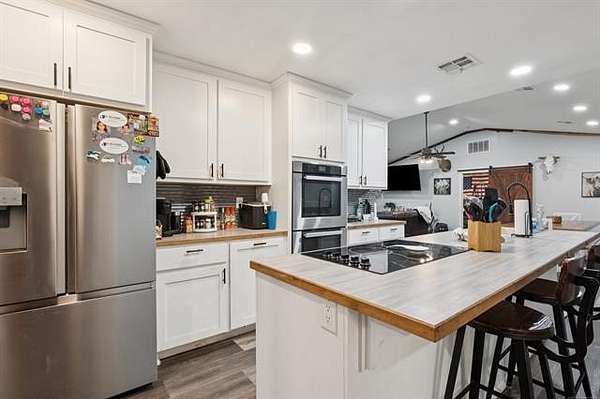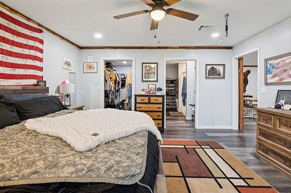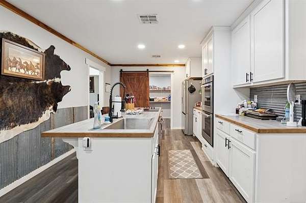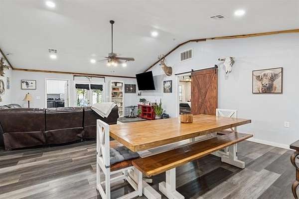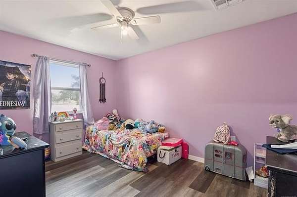 Discover peaceful country living just minutes from Lake Hudson with this lovely 5/3 home, built in 2021 & perfectly situated on 10+ acres of mixed pasture & trees. Ideal for nature lovers, hobby farmers, or anyone seeking space & serenity, the property features 2 ponds, excellent pasture land & plenty of room to roam. Step inside to an open-concept layout that seamlessly connects the kitchen, dining & great room w/vaulted ceilings-perfect for entertaining or family gatherings. The kitchen is a chef's dream with a HUGE walk-in pantry, SS appliances, large center island and durable LVP flooring is throughout the home. The smart split-bedroom design offers privacy with the primary suite tucked away on one side, complete with private bath & walk-in closet. On the opposite side, the 4 bedrooms are split with each 2 bedrooms sharing direct access to full bath-ideal for kids, guests or multigenerational living. Enjoy outdoor living year-round with a large covered back patio, perfect for relaxing while taking in your wide-open views. A solar panel system adds energy efficiency and long-term savings. Whether your looking for a place to grow, relax, or play, this property offers the perfect balance of comfort, space, and sustainability-just a short drive from the lake or town.
