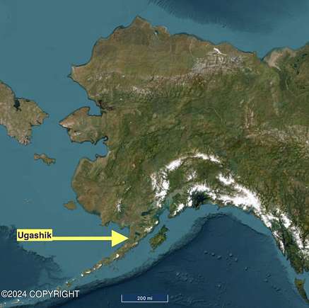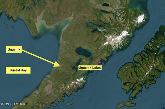 Fly to Ugashik. Walk 1/2 mile to the property. Or land, (with permission) on the 5000 foot private strip and walk across the street.