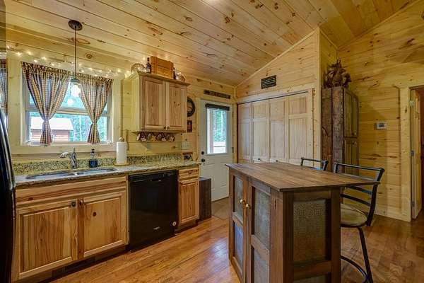 UNDER CONSTRUCTION - This BRAND NEW CABIN will be built for you! Enjoy a split floor plan offering 2 bedrooms and 2 bathrooms with ample space for comfortable living. Stunning D Log siding and metal roof make for striking rustic appeal, while the covered front porch offers a perfect spot to unwind. Inside boasts an inviting open floor plan, with plenty of natural light flooding through the windows of the spacious Great Room with custom stone fireplace. The kitchen has beautiful cabinets with granite countertops to provide elegance and comfort. Hardwood floors and T&G wood throughout bring a touch of warmth and ambiance to your home. You can choose from 2 more plans, including a 2/1 with either 768 or 864 square feet. Pictures depict a finished, lived in home - appliances and personal property not included.