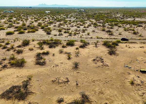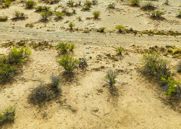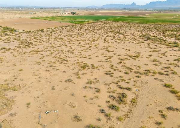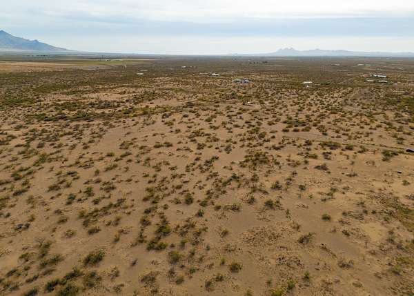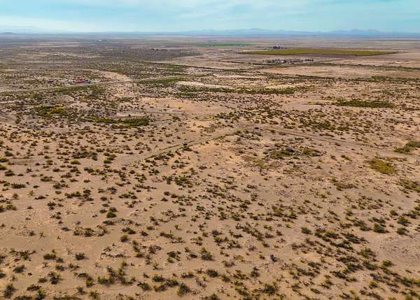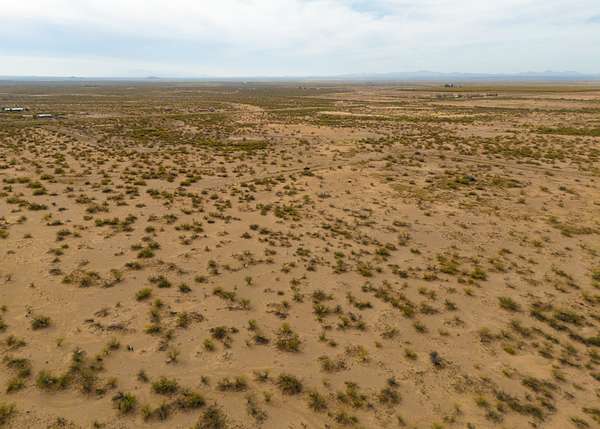 The land is located in a flat section of the Chihuahuan Desert surrounded by distant mountain horizons, natural vegetation, and broad skies that create a calm and remote-feeling environment.