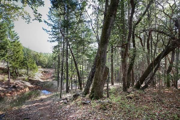 Owner will Carry with $50,000! Beautifully nestled on Quartz Creek, this 5-acre parcel allows for a variety of both personal and investment uses. Heavily treed and delightfully secluded, the raw land beckons for relaxation and tranquility. Envision building a gorgeous log cabin or rustic retreat with an entertainer's wrap-around front porch, soaring vaulted ceilings, and oversized windows to capture nature's daily beauty. Alternatively, the home may be used a part-time or full-time rental for leisure seekers. For those looking to capitalize on the vast timber resources, the lot is zoned as resource land! Enjoy the access to BLM land! Daily conveniences are a short drive away in Merlin and Grants Pass. You are only 6-12-miles from highly-rated restaurants, grocery stores, I5, medical facilities, and schools. Create your own slice of paradise in Oregon's scenic countryside. Schedule a tour today!
