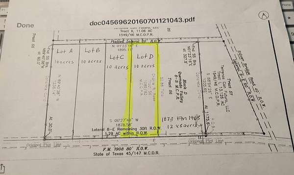 QUEMADO BLOCK D TRACT 56 dividing in 10 acre parcels