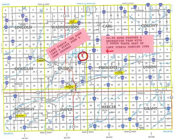 Est $4,392/moPASTURE & RECREATION!! A great pasture farm with 2 ponds located Southeast of Lake Icaria (approximately a 700 acre lake) with a state park & camp grounds. $5,500/acre.The area offers a lake, race car track & great hunting (big deer, pheasants & quail).See attached pictures for FSA information.