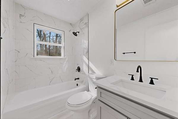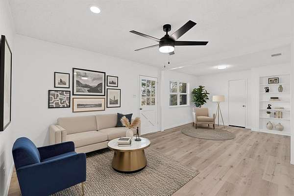 Home offers many updates including: new windows, new floors, new central HVAC and heating systems, new power panels, new appliances, new paint, new fixtures, new cabinets, new quartz countertops, new bathrooms. This move-in ready home is situated on a spacious 1.76-acre lot, offering a comfortable layout ideal for everyday living. The bright living room opens directly to a modern kitchen with ample counter space, flowing seamlessly into the dining area and main living space. The primary bedroom features an ensuite bath, while two additional bedrooms provide flexibility for guests, a home office, or hobby spaces.