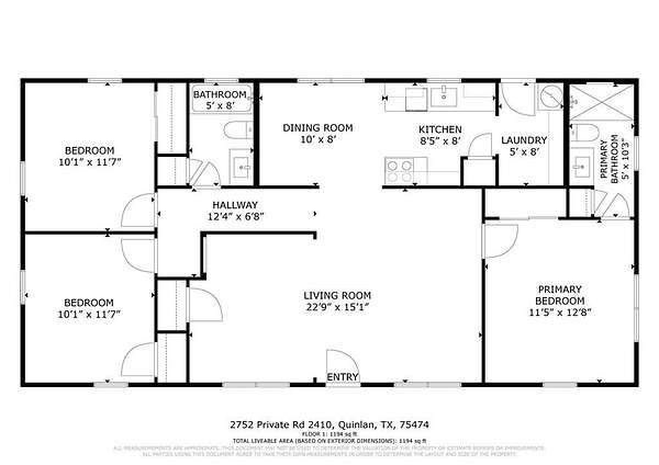 Head northeast on TX-276 E toward Wildrose Dr. Turn right onto Co Rd 2412. Turn left onto Private Rd 2410. Home on the right.