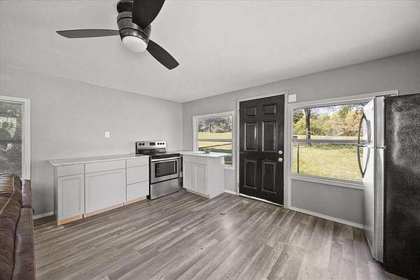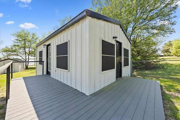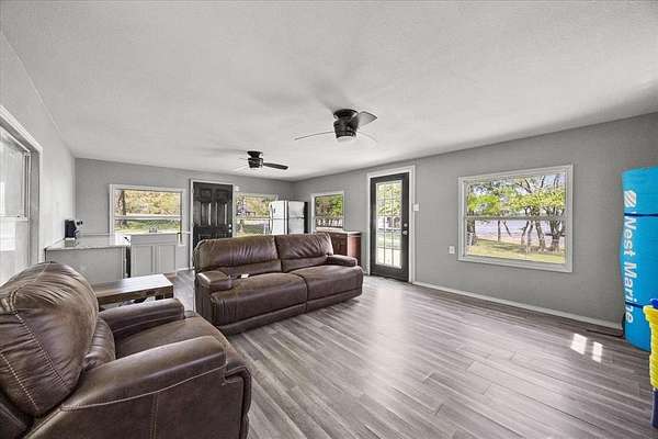 Rare opportunity to own .82 acre of deeded lakefront lot (plus an additional 1.2 acres of SRA ) comes with a fabulous boat dock for you boat and jet skiis and a day cabin to enjoy while building your ultimate dream retreat. An additional .87 acres of deeded land and 1.2 of SRA leaseback lakefront property is also for sale (see MLS 2128832) offering an expansive setting to bring your lakeside vision to life. Enjoy the existing day cabin that includes open floor plan with family room and kitchen, small fenced yard, welcoming veranda style porch, and convenient storage shed—perfect for enjoying the outdoors while you plan your future build. Please note: the cabin is not permitted for full-time living. Waterfront amenities truly set this property apart. Enjoy your private covered boat dock featuring one boat slip with an electric lift, ensuring your watercraft is always ready for the next adventure. The additional floating dock is ideal for fishing, kayaks, or relaxing by the water. Recently updated with durable metal siding and low-maintenance TREX decking, the dock blends style with longevity. An expansive 10’ x 28’ open deck provides the perfect spot to take in breathtaking sunsets or cast a line. Inside the cabin, you’ll find thoughtful updates including shaker-style cabinetry, granite countertops, an electric range, and refrigerator. Ceiling fans and solar screens enhance comfort during warm summer days. Residents enjoy access to the Waters Edge community amenities, including a gazebo, park, floating marina, restrooms, and ample guest parking—ideal for hosting family and friends. This is more than a property—it’s a lifestyle opportunity to create lasting memories in a peaceful lakeside setting. This is the one you have been waiting for! Ready for your summer fun!