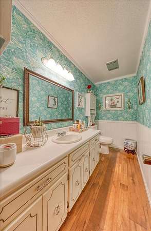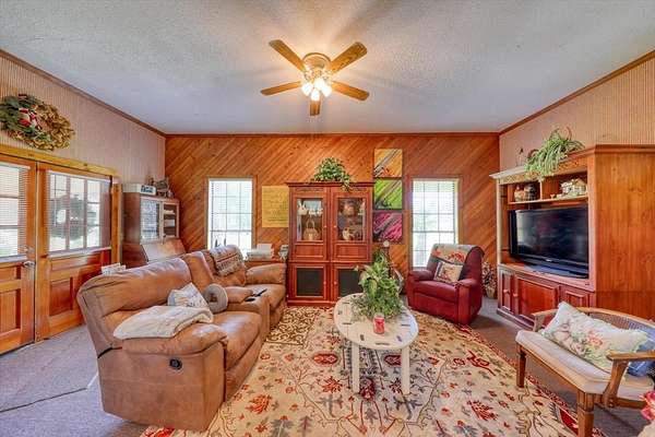High-Speed Internet Available! A true Quitman landmark, this beautiful Spanish-style residence sits on an elegant 3.04-acre setting in the heart of historic Quitman. Surrounded by palm trees and mature landscaping, the property offers a rare combination of architectural character, space, and versatility. Currently used as a private residence, the property is zoned General Business, allowing for a variety of potential commercial uses such as professional offices, boutique lodging, event space, or other business opportunities. Inside, the home offers generous living spaces and classic charm, including a large living room, formal dining room, and a comfortable family room with fireplace. An expansive entertainment room provides additional space for gatherings and hosting. The spacious primary suite features a walk-in closet and luxury bath, creating a private retreat within the home. With its iconic Spanish architecture, prime location, flexible zoning, and beautiful acreage, this property presents a unique opportunity to own one of Quitman's most distinctive homes.
