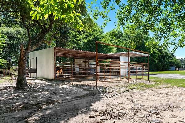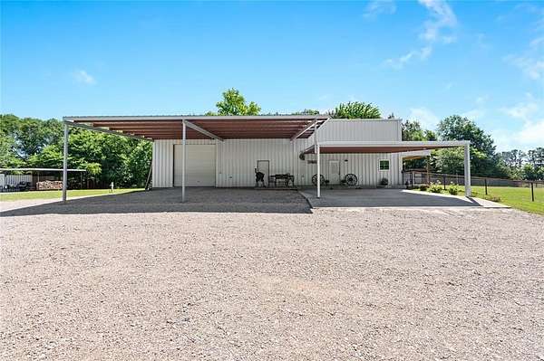 At the center of the property sits a beautiful barndominium built in 2022, combining rustic charm with modern comfort. An electric gated entrance welcomes you into a thoughtfully designed homestead that includes a spacious 40x40 shop with two bay doors ideal for equipment, tools, or hobby projects. You'll also find three covered horse runs along with lean tos for feed, storage, or shelter, as well as covered parking suitable for vehicles, RVs, boats, or trailers. The gently rolling acreage is dotted with scattered trees and features a peaceful pond perfect for livestock or relaxation.Whether you're dreaming of homesteading, operating a small ranch, or simply enjoying a private country escape, this property has it all. Schedule your private showing today and experience the charm, beauty, and functionality of this East Texas gem.