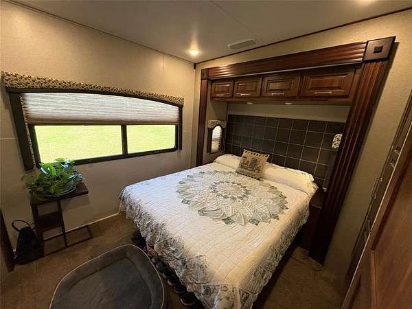 The RV offers a comfortable layout with washer and dryer connections, making it ideal for extended stays or full-time living. Owners have added a nice porch off the RV--perfect for morning coffee, grilling, or relaxing in the evenings.