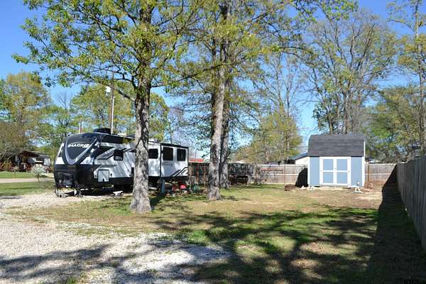 Welcome to 718 Indian Gap in the gated Holiday Village community on world-famous Lake Fork! This rare property includes TWO lots, offering extra space and flexibility for your lake lifestyle. The level lot is ready to enjoy with full RV hookups—water, sewer, and electric already in place. A large gravel area provides plenty of parking for your RV, boat, and guests, while a wood fence on three sides adds privacy. A storage shed is perfect for all your fishing and outdoor gear. Located just minutes from community boat ramps and fishing piers, you’ll have quick access to some of the best bass fishing in Texas. Holiday Village amenities include a clubhouse, swimming pool, tennis court, basketball court, playground. RV available for purchase separately, making this a great turnkey option for weekend getaways or full-time lake living.