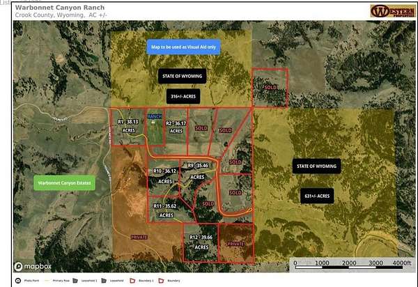 Warbonnet Canyon Ranch, situated adjacent to 320 acres of Wyoming State land to the North and another 640 acres to the East, offering a truly expansive and picturesque setting. The ranch boasts a barn and indoor riding arena, providing excellent facilities for equestrian activities. Additionally, Sourdough Creek gracefully runs through the middle of the property, enhancing the natural beauty and charm of the ranch. Home Features: Purchasing in Warbonnet Canyon Ranch will also include an HOA membership to the Ranch Headquarters where you will have access to the 1,560 square foot, three (3) bedroom, two (2) bathroom ranch house [cabin] through a timeshare style program. You will also have year-round access to the barn and indoor riding arena [stable, barn with pens/corrals, inside and outside watering tanks]. Contact Western Properties Team for additional information. 307-283-1901.