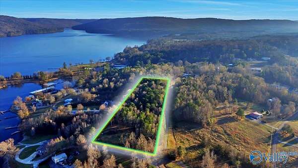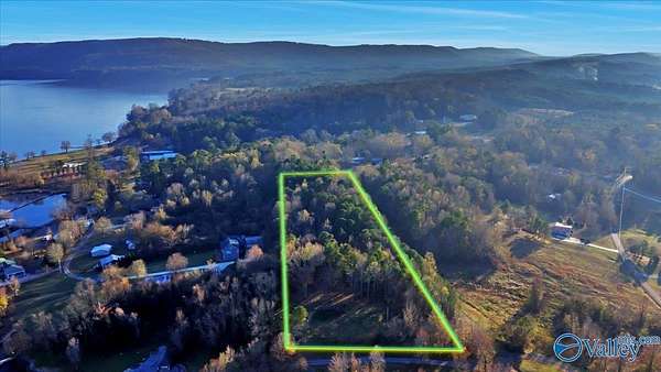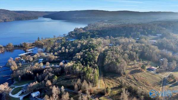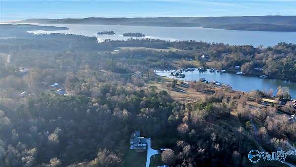 If you ever get tired of the this view, check your pulse. 270 degrees of a water view from atop this build spot. Do yourself a favor and see for yourself. Just an amazing spot for a home. 5.58 acres for just one home or to subdivide for other members of your family. Sit on the porch and watch the boats go by. Lake Guntersville is beneath you and all around. Power is on the property. A perc test and drawings are complete for a 2 bedroom house. Property was surveyed in 2023 and a newly constructed driveway has been put in to lead you to your retreat. 25' deeded easement leads you through the woods to your amazing lake views. Don't w