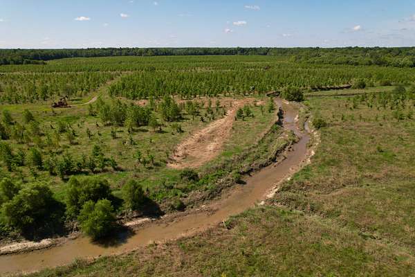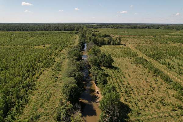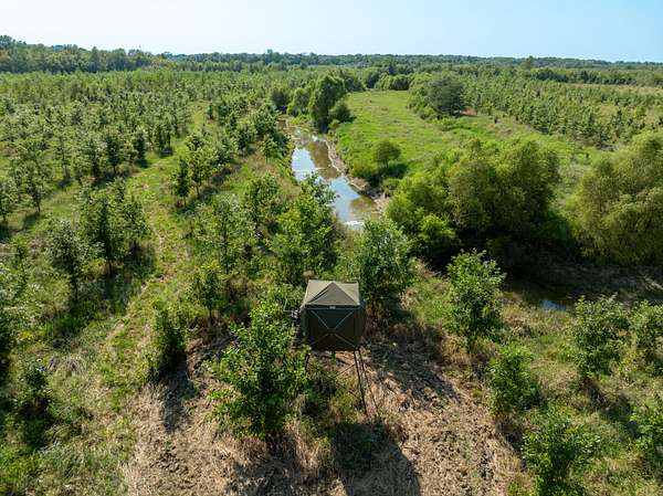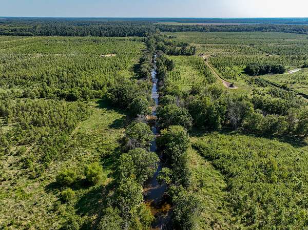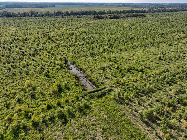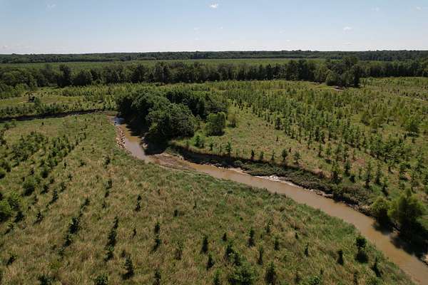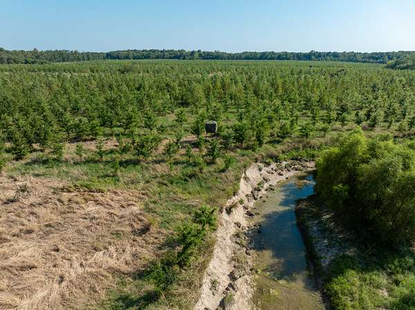 While mostly flat, this property includes gently rolling terrain near Little Muddy Creek that runs throughout. The majority of the land is part of a revenue generating Conservation Reserve Program (CRP) filtration program, planted with a blend of oaks and walnuts, enhancing wildlife habitat and conservation efforts. The property also features native grasses and wildflowers, with patches of dense woodlands providing ideal cover for deer and turkey, making it perfect for hunting and outdoor activities.