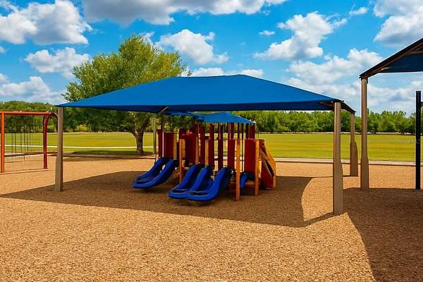 Enjoy community amenities including three scenic lakes, parks, a playground, fishing pier, library, and community center, perfect for outdoor living and recreation.