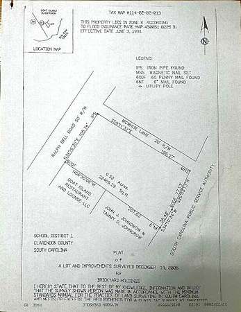I95 take exit 108 east on MG Hemingway Rd, left onto Bill Davis Rd, right onto Wah Davis Rd, continue to property within the Goat Island Marina area on Lake Marion(see property left of the restaurant).