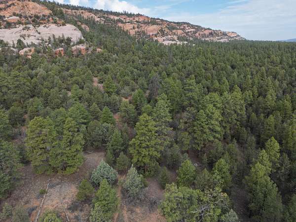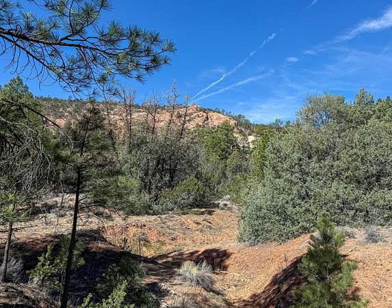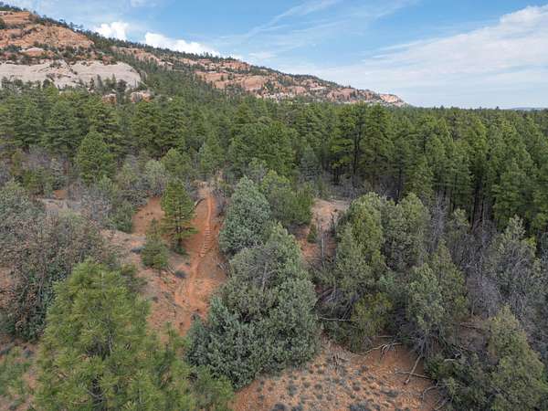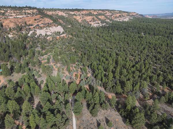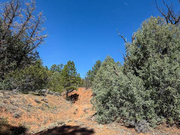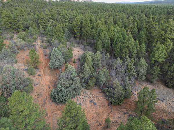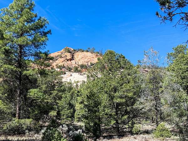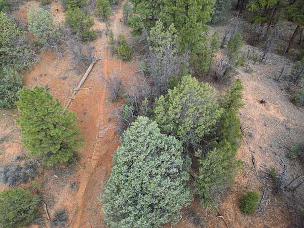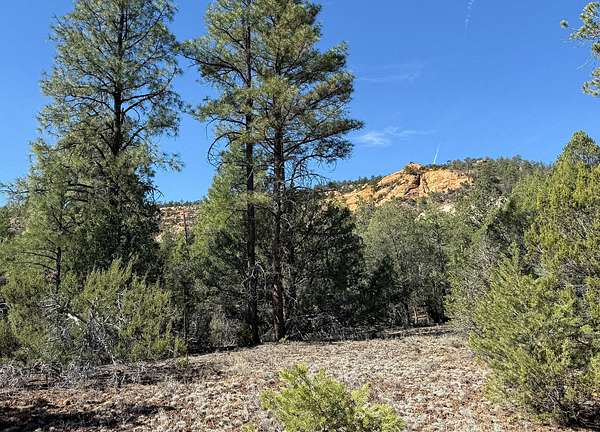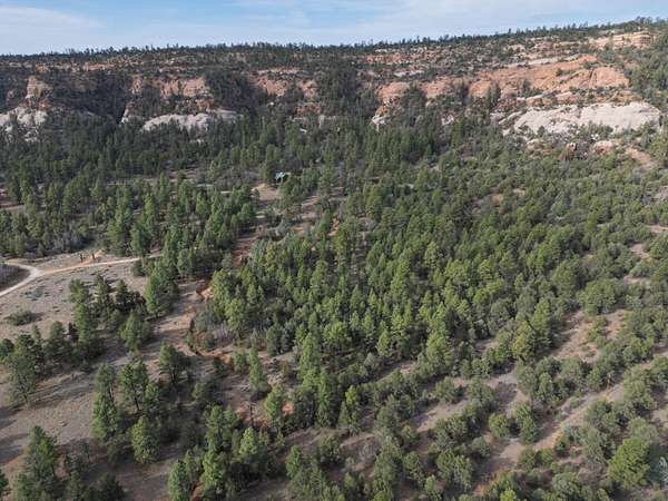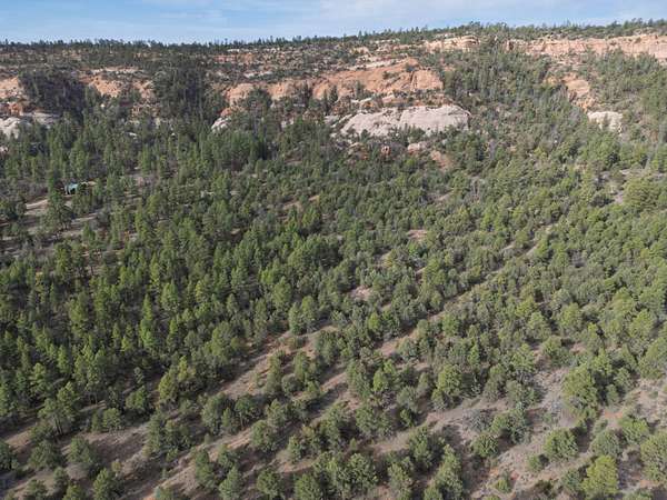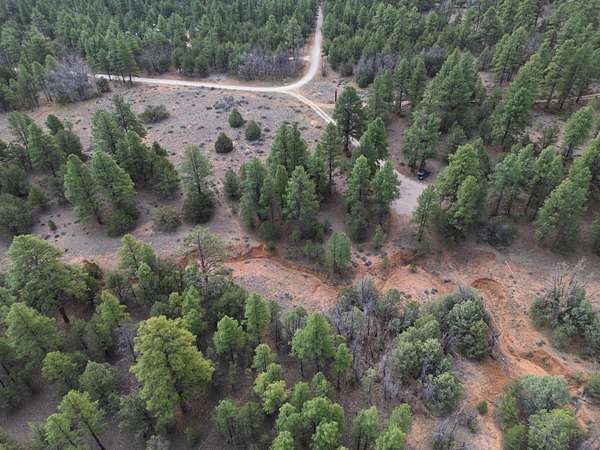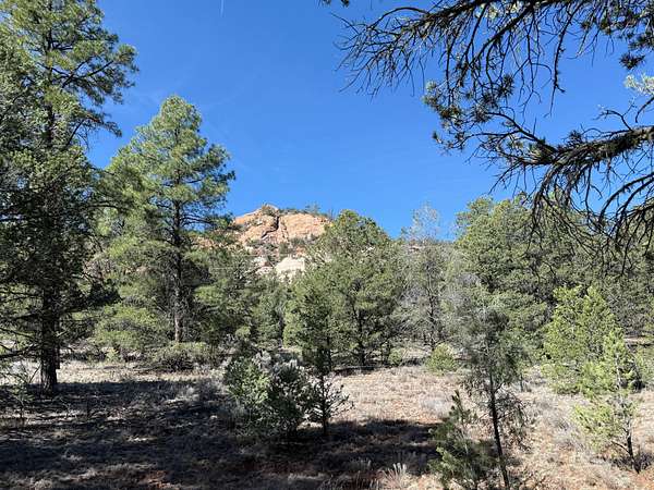 This double lot is located at the end of a cul-de-sac, with a narrow entry expanding into a generous lot full of woods and a dramatic arroyo. Let the sound of the wind in the pines lull you to sleep on these heavily wooded lots with close-up views of the colorful sandstone cliffs through the trees. Adjacent to the Timberlake commons area, with a private hiking and equestrian trail just beyond the property. Timberlake Ranch is a welcoming and helpful community, with HOA dues of only $460 per year, a bath house for camping Apr-Oct, and roads maintained year-round. Volunteer fire/EMT less than three miles away. Good wells in the area, electricity along the rear property line. Must be seen to fully appreciate.