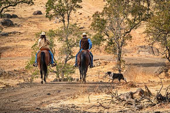 From Oakdale: Travel north on CA-120 W/N Yosemite Ave for 1.8-miles. Turn right on 26 Mile Road and travel 7.4-miles. Road transitions to Sonora Road. Continue heading north for 2.0-miles. Road transitions to Milton Road. Continue north for 13.8-miles. Locked gate at Lanford Pacheco Road (access road to property) is on your right (east side of road). Travel 3.6-miles on Lanford Pacheco Road until a fork in the road and turn right. Travel south until you reach the ranch gate at the northwest corner of property, approximately 38.068297, -120.816250.