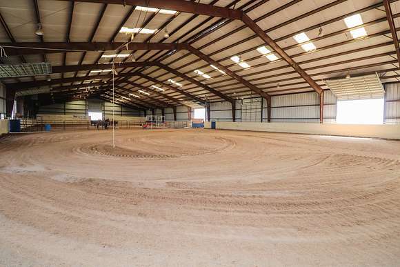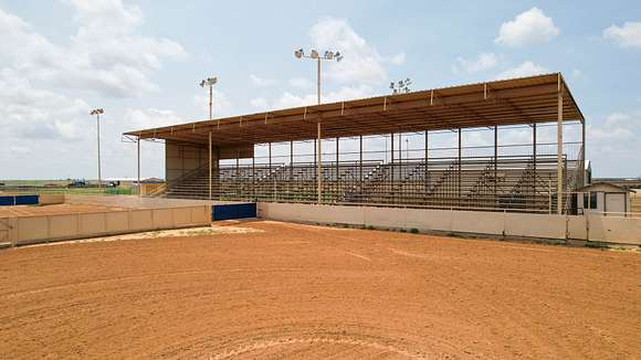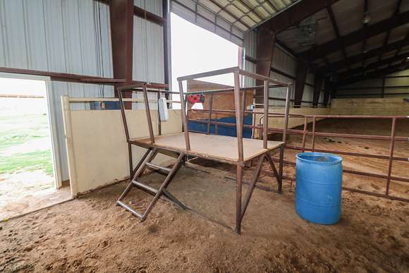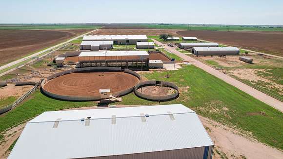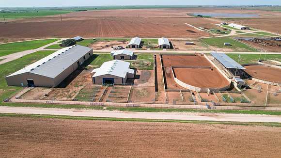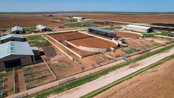 Everything a cutter, roper, snaffle bit rider, reiner, or trainer in any other equine discipline could ever imagine in a large-scale equine facility. If you love horses, then you will have an appreciation for a facility that was purposely built with a plan. As you turn down the private drive just north of Farwell Texas into this world class facility you will immediately notice the large heated 110' X 275' Indoor arena with side and end roll up doors, only to then be taken back by the large, well-lit outdoor arena with a huge, covered grandstand that will seat in the neighborhood of 1000 people. This arena also has a double decker press box/office that overlooks the primary cutting area of the arena. Both the outdoor and indoor arenas are currently split in half to accommodate cutting horse use but could be modified as needed and large enough for many other equine or rough stock activities. As you approach the grandstands you will notice a large concession stand that would be perfect for big events and crowds. Just West of the arena there are three unbelievable pre-work areas that are also equipped with an elevated press box and outdoor lighting. All the work areas for training and performance are built with top rail to ground solid steel fencing with pipe frame. The ground in all the working areas has been well maintained and is "good ground". All the work areas, and arenas are connected by an elaborate set of pipe cattle holding pens that funnel cattle from the west side of the property's cattle feeding area. The layout of this system is extremely proficient and logical. In the working arena areas, there are holdback pens for two additional sets of cattle once they are settled.