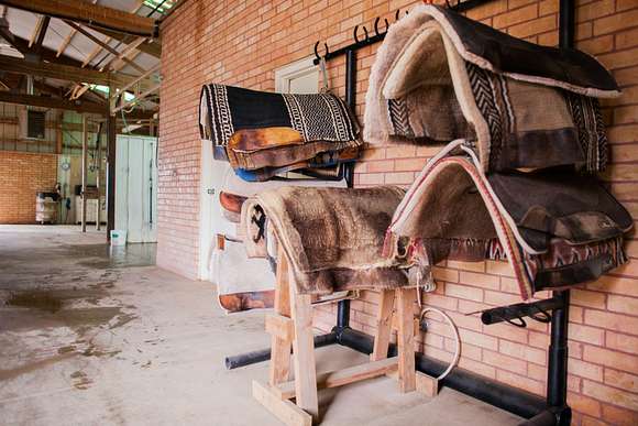 The Vet/Tack/Office building is located in the center of the property and is equipped with a heavy duty stanchion for basic vet and trim work. In this facility there are inside wash racks, men's and women's bathrooms with showers, lockable cinder blocks tack rooms and an office. Outside washracks are also present as well on west side of this facility.