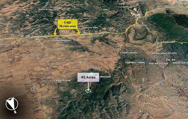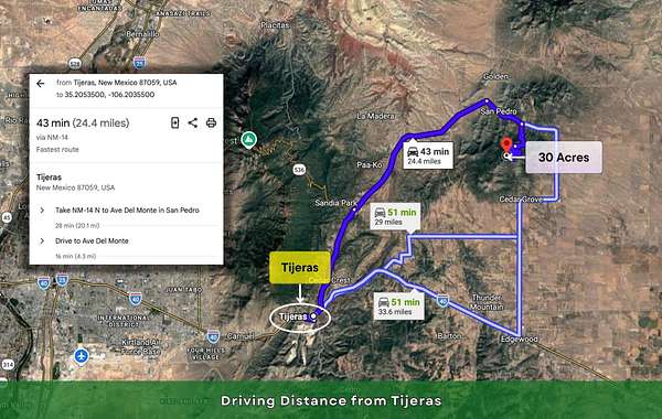 Est $906/moDiscover a rare 30-acre parcel in Sandia Park, Santa Fe County, New Mexico, offering dramatic landscapes, quiet seclusion, and remarkable access to both city conveniences and outdoor adventure. Positioned along Ranchitos Road, this property features classic high-desert terrain with gentle slopes, native grasses, and stunning views of the surrounding mountains and skies. With plenty of space and natural beauty, this parcel is ideal for a private retreat, recreational use, or a long-term land investment.