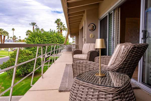 OPEN 1/11 and 1/18 (11-1pm) Welcome to an effortless lifestyle in the heart of the Rancho Mirage corridor! This low-maintenance, furnished Desert Braemar flat offers all the comforts you need to be happy, with surrounding mountain views, unforgettable sunsets, and a friendly, vibrant seasonal community -nestled on 12.25 acres of beautifully manicured private, gated grounds. Desert Braemar isn't just a place to live... it's resort style living you instantly feel at home in. This 55+ Co-Op community (cash purchase only) delivers an impressive lineup of amenities: a sparkling pool and spa, fitness center, pickleball and tennis, a fenced dog park, a stunning garden/event room with full kitchen, outdoor grilling patio, wood shop, lawn bowling, putting green, and plenty of guest parking. You'll enjoy your own assigned carport with both a carport locker and access to a secured community storage room. The location is unbeatable-easily walkable to local coffee houses, favorite eateries like Willies and Palm Cafe, shops, hiking trails, and the nearby greenbelt walking path. Best of all, the HOA covers property taxes, water, Spectrum premium cable and internet, exterior upkeep, grounds care, and maintenance of all community spaces. Come experience Desert Braemar-where comfort, charm, and community come together beautifully.