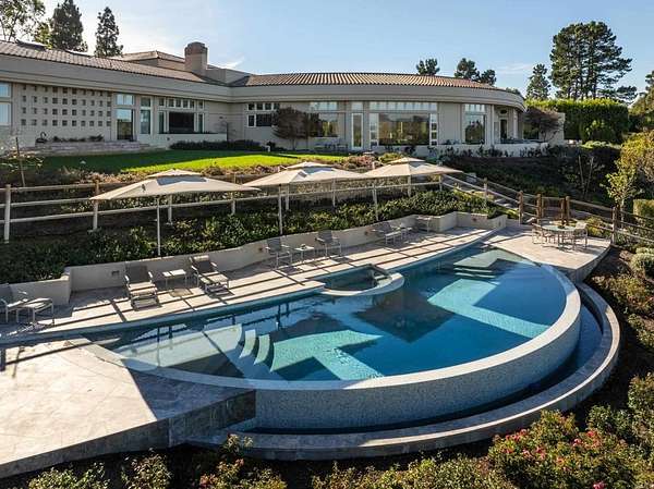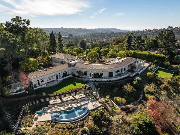 LIVE Artfully ELEGANCE REIMAGINED Restored and thoughtfully updated in 2023, this iconic Ken Ronchetti-designed Covenant estate is a masterpiece of architecture, landscape, and light. Perched above the Rancho Santa Fe golf course on an elevated 2.63-acre site, the residence offers ever-changing 360-degree vistas--sun washed fairways, sculpted mountains, twinkling evening lights, and the distant Pacific shimmering at the horizon. A LIVING SANCTUARY Inspired outdoor environments by award-winning landscape artist Takendo Arii elevate the property into a private resort of natural beauty. Meandering pathways lead through Asian influenced gardens, tranquil koi ponds, a cascading waterfall, a Zen garden, bermed terraces, a greenhouse, and sustainable raised vegetable beds and fruit trees. Every step invites serenity. ARCHITECTURAL LUXURY Sweeping curvilinear walls, dramatic glazing, and a signature pivoting zinc-alloy entry door introduce approximately 8,202 square feet of refined interiors. Updated in 2023 with a sophisticated, modern sensibility, the home blends fossil stone, Australian sandstone, boxed ceilings, and exotic koa, zebrawood, and eucalyptus finishes. Gallery-scale hallways and custom art lighting create an ideal canvas for showcasing an exceptional art collection. LIVABLE GRANDEUR Five ensuite bedrooms and eight baths include a reimagined, five-star primary suite--featuring a granite fireplace, serene sitting area, cove-lit ceilings, and a spa-worthy bathing experience with a jetted tub framed by a floor-to-ceiling window and luxurious marble surrounds. A CHEF'S HAVEN The kitchen, architecturally new in 2023, is designed for gourmet artistry and effortless daily living, with custom cabinetry, stone surfaces, high-end appliances, and an inviting breakfast room bathed in natural light. AN ESTATE FOR ENTERTAINING Expansive stone terraces, a gated entrance, a four-car garage, a resort-style pool from the original designer - these thoughtfully designed grounds offer endless possibilities. This is a home equally suited for extraordinary gatherings and peaceful, private retreat. WHERE ART, ARCHITECTURE & NATURE CONVERGE A rare offering within the Rancho Santa Fe Covenant--restored, renewed, and ready to inspire for decades to come