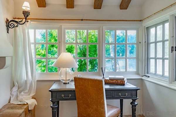 MID- & LONG-TERM FURNISHED RENTAL - Fairbanks Ranch Resort-Style Casita Welcome to this exceptional detached casita set on a sprawling, private estate in prestigious Fairbanks Ranch. Inspired by Rancho Valencia Resort and Spa, this refined 2,000 sq ft residence offers elegant indoor-outdoor living in a serene and beautifully landscaped setting. The home features two spacious en-suite bedrooms and two full bathrooms, including a custom California king suite and a secondary suite with two queen beds. Terra cotta floors, beamed ceilings, and an open living space with ambient fireplace create warmth and character throughout. A fully equipped kitchen with dining table for four, dedicated office nook, and full-size washer and dryer provide everyday functionality for extended stays. Driveway parking for two vehicles is included. Positioned in a private corner of the estate near the tennis court and pool house, the casita enjoys a quiet, secluded feel and is unlikely to intersect with the main residence, offering a true personal retreat. Guests may enjoy the full-size tennis and basketball court, fenced dog area, garden, and orchard. Access to the estate pool, spa, sauna, and outdoor kitchen is subject to main house occupancy and must be confirmed prior to booking if essential. Optional private office space may be added for an additional fee. Pets considered with approval and fee. Rates vary by season and length of stay. Published amounts are estimates; final pricing, fees, and availability are subject to change until a signed agreement. Please inquire for an exact quote.