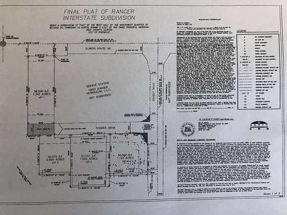 This land site is located in Rochelle, at the IL RT. 38 and Interstate I-39 junction, a high traffic area on Ranger Drive directly across from the fully developed Road Ranger Travel Center and across from the Petro/Travel Shopping Center. LOT 2 is 39,375 square feet with 175 feet of frontage on Ranger Drive. Ranger Drive has been extended and completely finished. Lot 1 is fully developed and utilized by Road Ranger Travel Center for additional parking, Lot 4 is a fully developed McDonald's, adjacent to a Culver's. Lot 3 is currently undeveloped land, however there is a Restrictive Covenant on this site (see additional notes). The restrictive covenant does NOT apply to LOT 2 that is being offered. This site was fully approved by the city for food service several years ago, and is available for development immediately. This is a highly visible/high traffic area serving as a stop for commuters, travelers, & commercial truck traffic traversing the I-39 corridor. Growth and Development Area