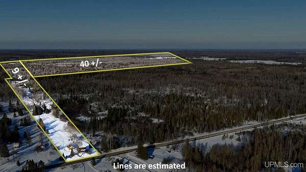 49+/- Acres In Delta County, Maple Ridge Township,with 200 Ft of frontage on CR432 an Old House of No Value with a Garage which is in pretty good shape. There is a "strip" of land where the house is, which has a good trail/Road which provides access to the "Back 40". Excellent Hunting for all types of wild game. You can pull in a camper now, and build your dream home here later. No information regarding the condition , age, or usability of the Well or Septic with the old home. The Acreage is 100% wooded, with a good trail providing access thru the parcel. There is a Blind in place and ready to go. The North portion of the property is high, lower in the middle and then scattered Hardwoods along the South. Very nice parcel for privacy as well as having Year round access on a paved road with electricity. Conveniently located just off US41.
