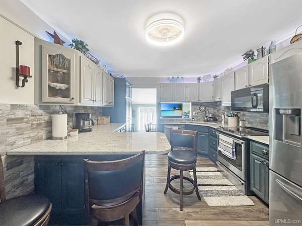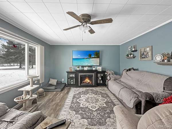 Well-Maintained 3-4 Bedroom 1.5 bath Ranch home with approx. 1843 sq. ft. on 4 Acres of land just east of Rapid River. Pride of ownership shows throughout this very well-kept ranch-style home. Situated on approximately 4 acres this fine home features 3 bedrooms and a spacious full bathroom with a walk-in shower on the main level and a half bath in the salon area. The home includes all appliances: stove, refrigerator, microwave, washer, and dryer The dining room addition is just off the kitchen too. The living room is good size with plenty of room for that BIG screen TV or that cozy large sectional you've always wanted. Newer luxury vinyl plank flooring runs through most of the home, while the bedrooms are comfortably carpeted. The attached garage has been converted into a hair salon that has been operated for more than 40+ years as such and has a half bath and first floor laundry area. This space could continue to be used as a salon or easily converted back to a garage, family room, or other living space depending on your needs. There is a 20x40 detached garage next to the home for interior parking or storage and also has a nice workshop area. The full basement is partially finished and includes a large family room area, a 4th bedroom, and a spacious utility room with workshop space. There is also a sauna (currently disconnected but easily reconnected) that the sellers are currently using for storage. The basement layout offers plenty of room for adding an additional bathroom or another bedroom etc. if desired. Major updates include completely updated plumbing in 2026, electrical updates completed in 2024, and a furnace that is only 5 years old and Central air was installed at that time too. The roof and other mechanicals are in very good condition. The asphalt driveway provides plenty of parking and easy access to the highway. Two parcels are included in the sale. The home sits on approximately 2.58 acres, and the additional 1.4-acre parcel includes a 12x60 2 bedroom 1 bath mobile home with its own well and septic. While currently used for storage, it could potentially be restored for living space, replaced with a new mobile home, or serve as a future building site. Also located on this parcel is a 30x40 insulated and heated workshop that seller worked on all kinds of things including vehicles. There is plenty of room on the property for a garden or additional outdoor activities, making this a versatile property with many possibilities