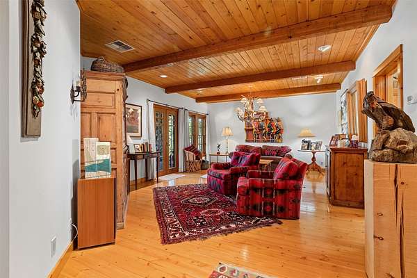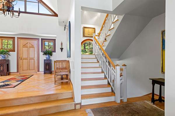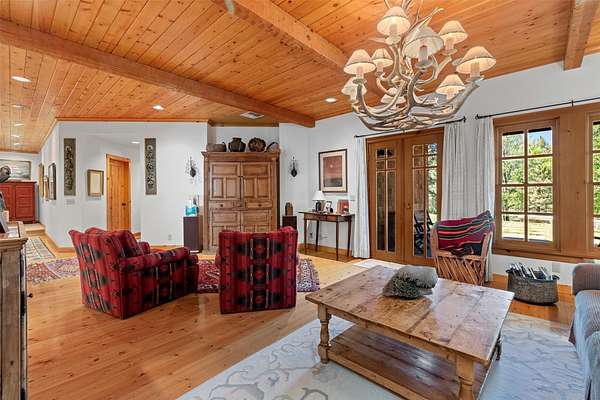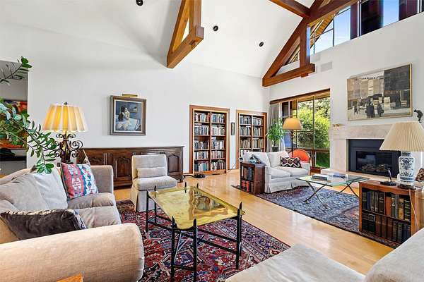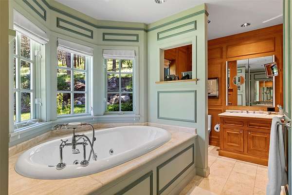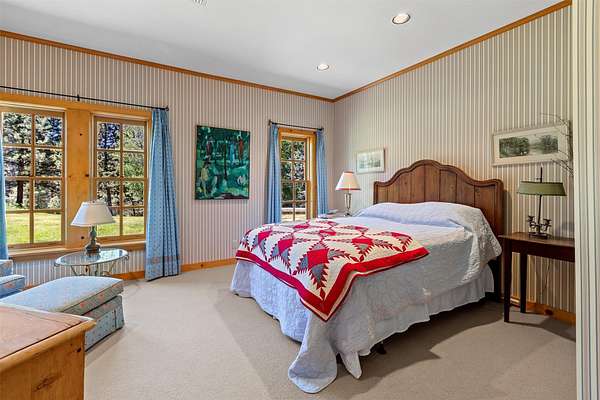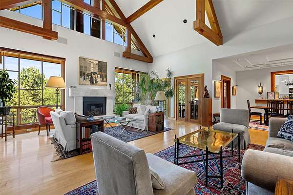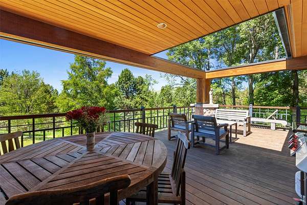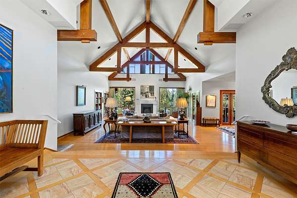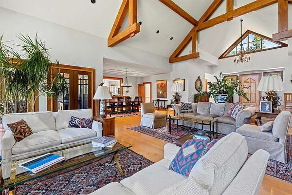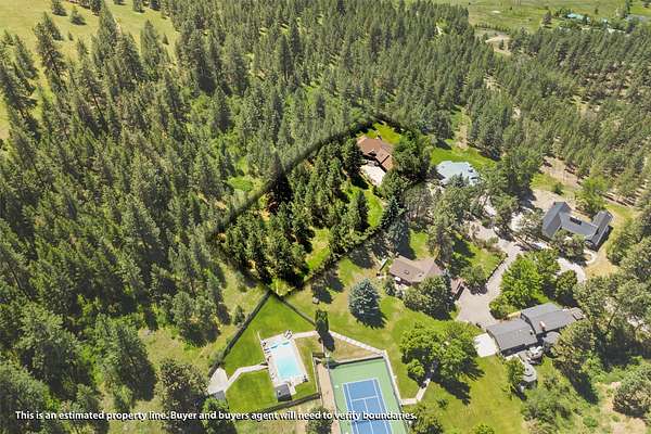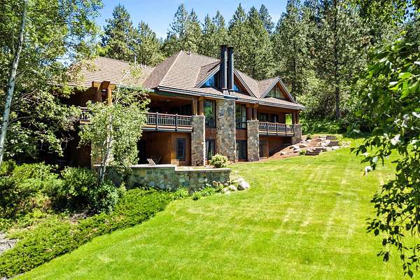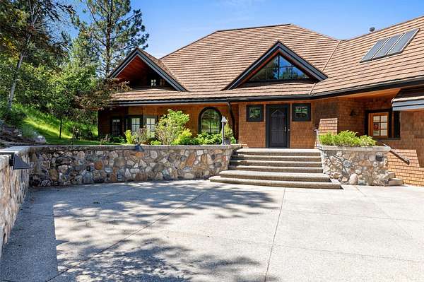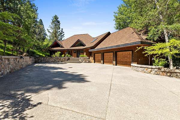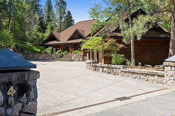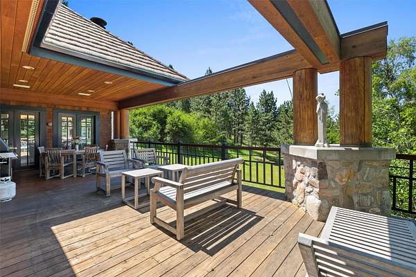 A rare offering in one of Missoula's most sought after neighborhoods. A custom built home, this timeless classic offers stunning views from every room, and architectural beauty at every corner. Opening with an expansive great room to capture the surrounding beauty, no detail was missed with the design and quality of this home. The open airy floor plan features extraordinary beam work, tying in rustic Montana touches with modern elegance of marble and stone. The dining opens onto an ample covered deck to soak up the view of the rolling lawns and surrounding trees and with privacy in mind includes an additional building lot as a buffer. The grounds back up to public lands ensuring endless recreation and privacy while this small neighborhood shares private amenities such as a pool and tennis courts. An impressive primary suite sits on the main floor, incredible private office space upstairs and 2 guest suites down with an informal rec room.