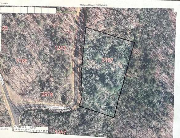 From I-40 Exit 90 Lake James/Nebo....Turn right onto Harmony Grove Rd...In approx 2.7 miles, turn left onto US-70 W....0.4 mile, left on Hoppy Tom Hollow Rd....Immediate right on Forest Country Dr. (gate code needed)...Follow Forest Country Dr. to right on Heartwood Dr....At fork, keep left on Big Branch Dr...At dead end, turn left.....Take first right onto Ravenswood Dr....Lot 106 is the 2nd lot on the right. No sign. Use LandGlide or similar app to see approx lot lines, last name Carey.