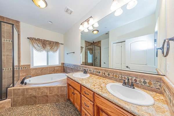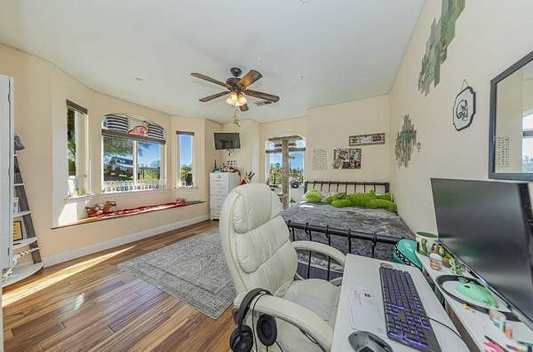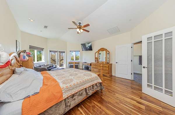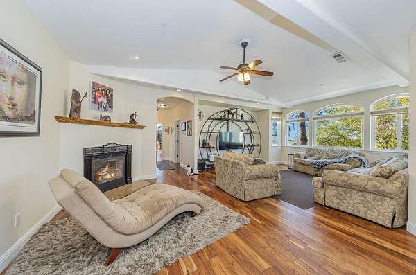 Exquisite Custom Home! A one of a kind from top to bottom that is a real showpiece w/great thought & care in the design & use of materials throughout. From the gated entry to the grand entry w/a circular staircase leading to the primary suite, there is so much to see in this home. Acacia floors throughout w/sealed aggregate flooring in the kitchen & BAs for easy clean up. A very lg. gorgeous kitchen w/an island for eating or just chatting w/friends while you cook those scrumptious meals, makes for a fun time entertaining friends or family. A step-down living room & propane fireplace add an air of comfort w/the design, all while having easy access to the formal dining room & kitchen. As you stroll down the hall you will come to the other BDs, BAs & the oversized game/family room w/plenty of room for a pool table, bar, or dance studio space. Just let your imagination run wild. Be sure to go up to the primary suite & stroll out to the oversized partially covered patio to sit & relax or add a private spa there. The primary BA is very spacious & the huge walk-in closet that feels like it just keeps going. As you look over this 2.51+/- acre property, you will see the land is all usable, fenced, cross-fenced w/chicken coops, storage building, lg. gazebo on the back side of the home w/built-in barbecue & so much more. Tankless water system, wired for generator, security system, built-in wall safe & cameras & oversized garage w/additional 10x13 workspace.