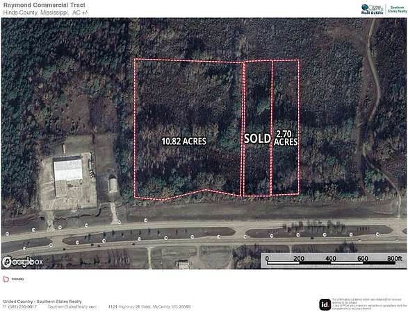 Est $3,617/mo10.82 Acres Commercial Land for Sale in Raymond MS C-2 Zoned10.82 Surveyed Commercial Acreage in the Town of Raymond. This lot has growth written all over it. Great location for new shopping center, restaurants, apartments, retail, office space, etc. A savvy investor or business professional with a vision could really create a lasting impression for the City of Raymond on this parcel of land. Power and water are available at the road; the tract could easily be divided with the road frontage. Zoned C-2 within seconds of Hinds Community College, the largest Junior College in the State of Mississippi