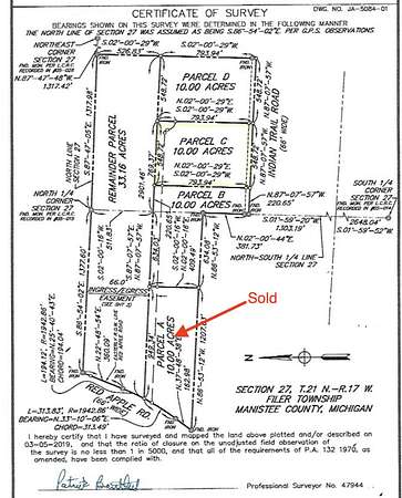 Location Location Location! This 10 acre parcel is just off Red Apple Rd down Indian Trail, just South of Manistee in Filer Township across the street from Sundling Park. Sundling Park provides you with great access to sandy Lake Michigan beaches! The property is nicely wooded and would provide great privacy for your new home. Filer Township has a golf cart ordinance that would allow you to cart right over to the park and go to the beach! This is only a 5 minute drive to Downtown Manistee and all the restaurants and shops it offers. If you are looking for the perfect West Michigan building site then you have found it! 2 Additional 10 acre lots available!