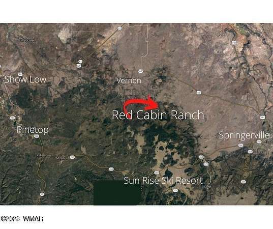 From Show Low: On Hwy 60 Go East 20 miles to Co Rd 3140 (Vernon/McNary) and go 2.5 miles to Co Rd 3261. Turn left (East) and go 4 miles to the split. Stay straight towards Thompson Park on 404. Go 4 miles to a sign on the right that says ''Red Cabin Ranch 1 Mile'' . Turn left and go 1 mile to the Red Cabin Ranch main gate. Once inside, Stay on main rd to left around pond and continue to lot.