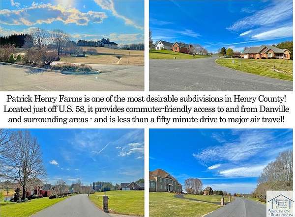 Est $208/moWelcome to Patrick Henry Farms! Located just off U.S. 58/A L Philpott Hwy, this is one of Martinsville and Henry County's FAVORITE subdivisions, and several residential lots are still available - including this one! Located on beautiful Red Hill Drive, this 0.824 acre lot is yours to build the home of your dreams! Public water, electric, and high speed internet available from street (no public sewer). HOA fee is $5 for raw land/lot, $10 once residence established. All building plans subject to covenants/restrictions. Contact listing agent for more information. With the casino coming to Danville, and low home inventory, more and more people will be moving toward this area intending to build, so plant your flag now while you can!