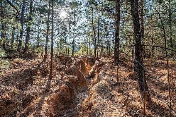Discover an exceptional 51-acre property that seamlessly blends natural beauty with recreational potential in Marshall, Texas. This pristine property offers the perfect canvas for your dream home, hunting retreat, or outdoor adventure compound--all with convenient access to major thoroughfares and regional amenities.The property features a predominantly wooded landscape with a trail system throughout, complemented by dynamic topography with 90 feet of elevation change that creates stunning vistas and diverse terrain. A natural spring-fed creek provides crystal-clear water year-round, offering an ideal solution for maintaining a pond without ongoing water costs. A well-developed creek system flows west to east across the northern boundary, while mature hardwoods create perfect natural habitat for wildlife. One of the property's most distinctive features is the central power line clearing, which offers breathtaking peak-to-peak views spanning 315 yards--exceptional for hunting blinds or recreational shooting. The 3-acre red iron ore harvest site in the center creates a distinctive desert-like oasis in the heart of East Texas, perfect for hunting, a private shooting range, or unique recreational uses. The extensive trail network is ideal for hiking, ATV riding, or wildlife observation. Access and location make this property particularly attractive. With approximately 375 yards of frontage on Red Oak Road and 230 yards on a private road, entry options are plentiful. Sitting just 0.6 miles from Interstate 20, you're only 10 minutes from Marshall, 20 minutes to Longview, and 39 minutes to Shreveport Regional Airport.This property is ideal for a custom dream home with acreage and privacy, a hunting preserve with natural funnels and food plot potential, a recreational shooting property, a weekend retreat, or a multi-generational family compound. The rare combination of features, accessibility, and recreational potential makes this a standout opportunity in East Texas.