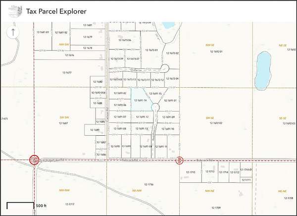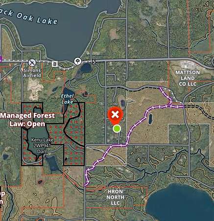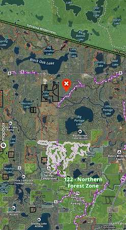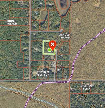 From the intersection of Cth B and Carlson Rd West of Land O' Lakes, take Carlson Rd South 1 mi to the "T" and then a Left onto Babcock Rd. Take Babcock Rd 0.2 mi to Red Pine Ln on the Left and go to the end of the cul-de-sac to the West