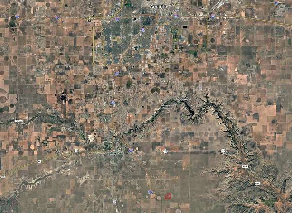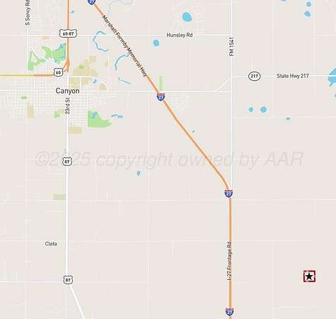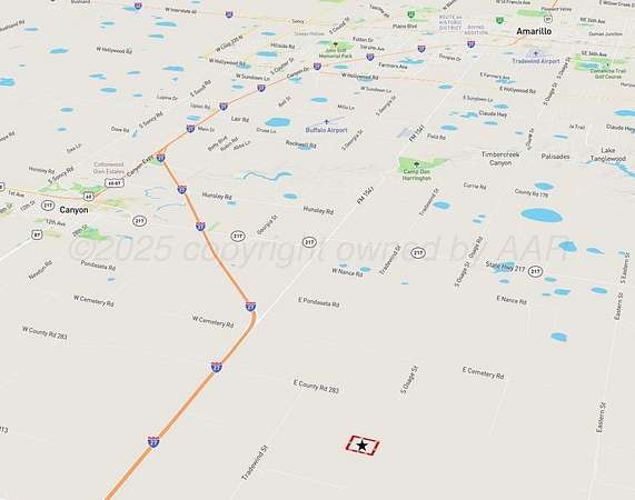 From Canyon head east on Hwy. 214 onto Interstate-27 south. Drive on I27 for 3 miles, exit Cemetery Rd. Continue south after exiting on the access road to E. County Road 283. Turn east on CR 283 for 1 mile; turn south on Tradewind St. for 0.75 miles and turn again east on Red Tail Ln. Continue east on Red Tail Lane to the property.