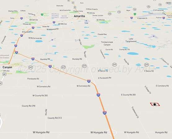From Canyon head east on Hwy. 214 onto Interstate-27 south. Drive on I27 for 3 miles, exit Cemetery Rd. Continue south after exiting on the access road to E. County Road 283. Turn east on CR 283 for 1 mile; turn south on Tradewind St. for 0.75 miles and turn again east on Red Tail Ln. Continue east on Red Tail Lane to the property.