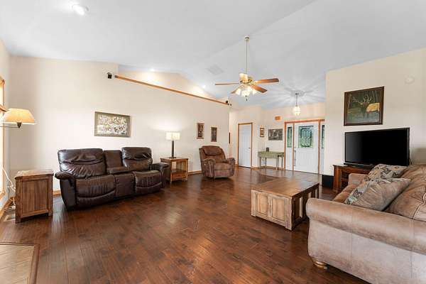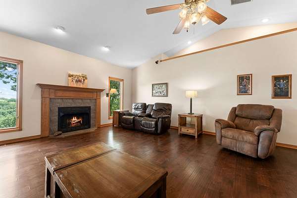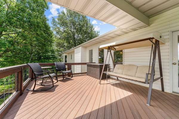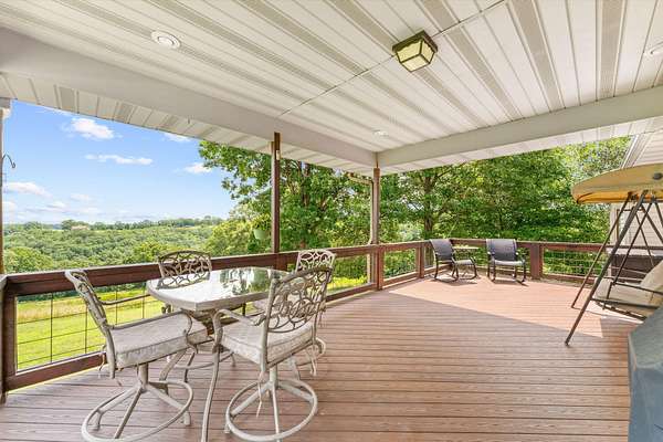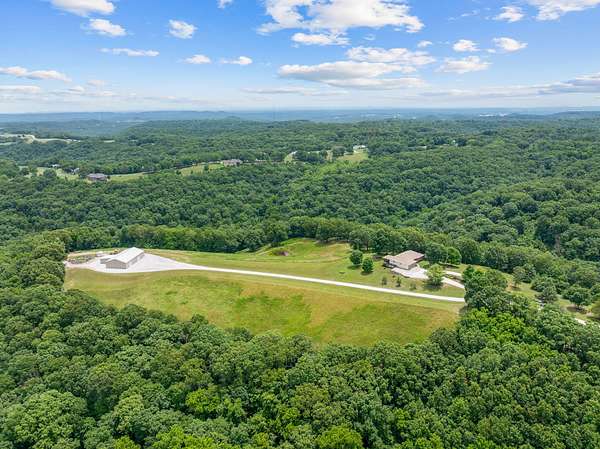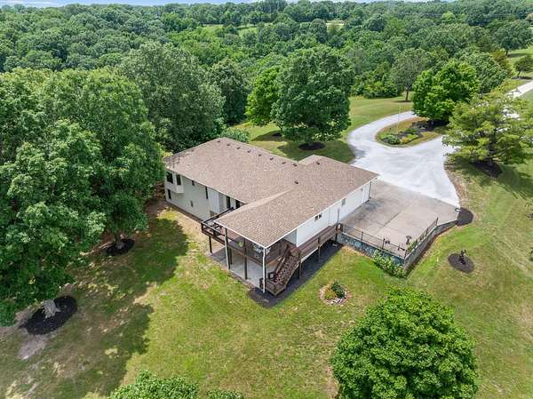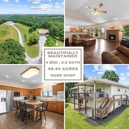 Immaculate and beautifully maintained, this 4-bedroom, 2.5-bath home sits on 48.44 scenic acres in a prime location just off Hwy 160--offering convenient access to both Branson and Springfield, while still feeling private and tucked away with a long driveway set back from the road.The property features a spacious, manicured yard surrounded by open land that has been carefully maintained over the years. Inside, you'll find a large open kitchen and dining area, generous living spaces, and a fully finished basement--aside from one versatile unfinished room, perfect for a home gym, movie room, bonus space, or additional bedroom. The basement also includes a second living area, ideal for relaxing or entertaining.Major updates include a new roof and composite deck in 2023, as well as a high-efficiency HVAC system with ground source heating and cooling installed in 2025.Enjoy outdoor living on the expansive covered deck, or explore the property's established trails, garden, and water hole--perfect for attracting deer. A small hunting shack adds to the outdoor appeal.A standout feature is the massive 4,615 sq ft shop just below the home, complete with three brand new garage door openers--offering plenty of space for storage, equipment, or hobby use.This property blends comfort, functionality, and natural beauty--ideal for those seeking peaceful living with room to roam.
