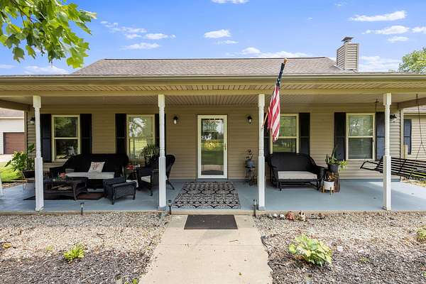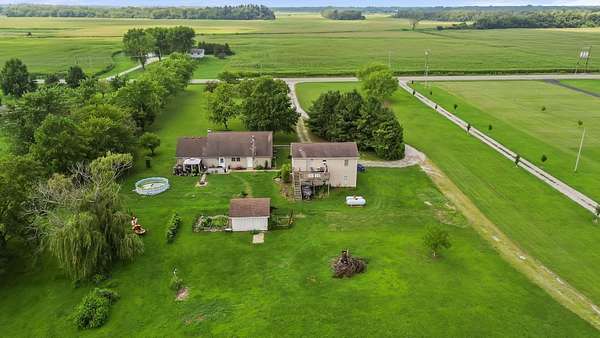 MOTIVATED SELLER! WILL LOOK AT ALL OFFERS! Discover an exceptional opportunity with this open-concept ranch home set on a sprawling 5 acres, complete with a detached garage housing a two-bedroom apartment above! This remarkable property is brimming with potential and versatility. Step inside the main home to find a captivating living space, enhanced by a striking wood-burning stone fireplace and soaring vaulted ceilings. The well-designed split floor plan includes 2 to 3 bedrooms, with the third bedroom currently serving as a private office. This room offers exclusive access to the outdoor living area, elegant French doors leading to the main living space, and a magnificent double-trayed ceiling that adds to its charm. The kitchen is a chef's dream, boasting ample natural light and breathtaking views of the surrounding acreage. Tastefully updated with granite countertops, it provides a perfect setting for cooking and entertaining. Retreat to the expansive master suite, where you'll find generous space and additional heating in the en suite bathroom to create a truly relaxing oasis. But that's not all! Above the spacious and heated 2.5-car garage lies a two-bedroom, one-bathroom apartment, ideal for related living, an Airbnb rental, or your creative studio. With its own private entrance and a large balcony overlooking the vast grounds, this space is perfect for enjoying serene moments and inspiring views. Imagine the possibilities on these 5 acresa"plenty of space for horses, livestock, or even a personal garden! Experience the charm of rural Indiana while enjoying easy access to major roadways for your daily commute. This is more than just a home; it's a lifestyle waiting for you to embrace! Act now and make this extraordinary property your own!
