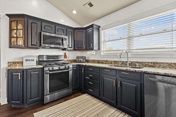 - Dishwasher, Dryer, Gas Range, Microwave, Refrigerator, Stainless Steel Appliance(s), Washer