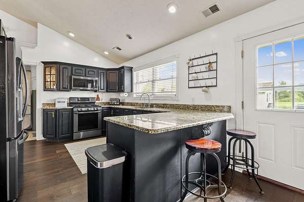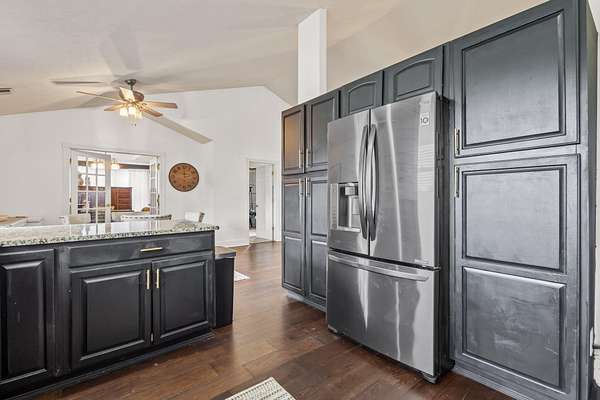 - Ceiling Fan(s), Eat-In Kitchen, Granite Counters, High Ceilings, In-Law Floorplan, Open Floorplan, Tray Ceiling(s), Vaulted Ceiling(s)